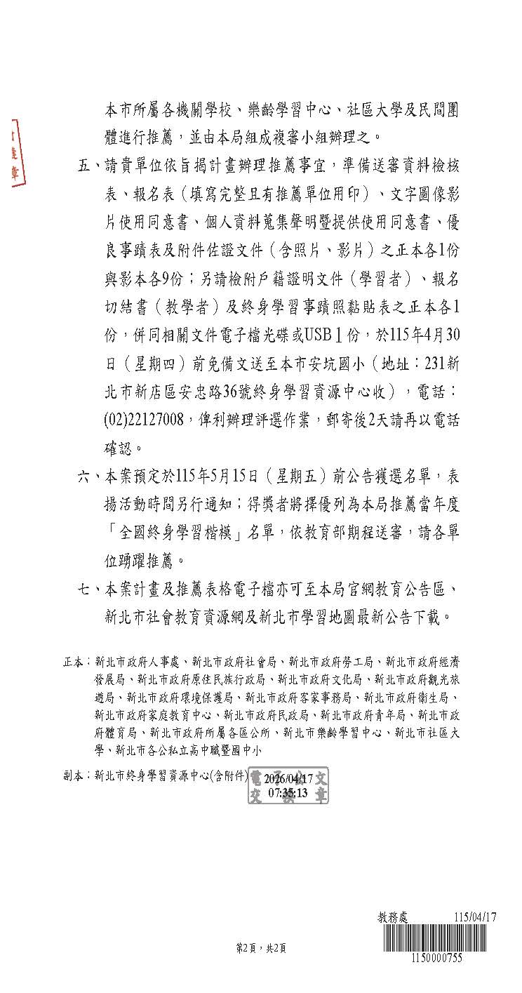 2026 4/17 115年度全國終身學習楷模新北市代表選拔實施計畫 SPEED Super Desk_頁面_1.jpg 314.08 KBSPEED Super Desk_頁面_2.jpg 134.93 KB1092128_0708439_附件2-2、115年度全國終身學習楷模新北市代表選拔實施計畫(發文版)0414.2_頁面_01.jpg 309.17 KB1092128_0708439_附件2-2、115年度全國終身學習楷模新北市代表選拔實施計畫(發文版)0414.2_頁面_02.jpg 362.32 KB1092128_0708439_附件2-2、115年度全國終身學習楷模新北市代表選拔實施計畫(發文版)0414.2_頁面_03.jpg 302.49 KB1092128_0708439_附件2-2、115年度全國終身學習楷模新北市代表選拔實施計畫(發文版)0414.2_頁面_04.jpg 243.6 KB1092128_0708439_附件2-2、115年度全國終身學習楷模新北市代表選拔實施計畫(發文版)0414.2_頁面_05.jpg 120.55 KB1092128_0708439_附件2-2、115年度全國終身學習楷模新北市代表選拔實施計畫(發文版)0414.2_頁面_06.jpg 355.69 KB1092128_0708439_附件2-2、115年度全國終身學習楷模新北市代表選拔實施計畫(發文版)0414.2_頁面_07.jpg 175.73 KB1092128_0708439_附件2-2、115年度全國終身學習楷模新北市代表選拔實施計畫(發文版)0414.2_頁面_08.jpg 127.27 KB1092128_0708439_附件2-2、115年度全國終身學習楷模新北市代表選拔實施計畫(發文版)0414.2_頁面_09.jpg 118.22 KB1092128_0708439_附件2-2、115年度全國終身學習楷模新北市代表選拔實施計畫(發文版)0414.2_頁面_10.jpg 149.47 KB1092128_0708439_附件2-2、115年度全國終身學習楷模新北市代表選拔實施計畫(發文版)0414.2_頁面_11.jpg 107.62 KB1092128_0708439_附件2-2、115年度全國終身學習楷模新北市代表選拔實施計畫(發文版)0414.2_頁面_12.jpg 116.32 KB1092128_0708439_附件2-2、115年度全國終身學習楷模新北市代表選拔實施計畫(發文版)0414.2_頁面_13.jpg 105.48 KB1092128_0708439_附件2-2、115年度全國終身學習楷模新北市代表選拔實施計畫(發文版)0414.2_頁面_14.jpg 126.8 KB1092128_0708439_附件2-2、115年度全國終身學習楷模新北市代表選拔實施計畫(發文版)0414.2_頁面_15.jpg 123.48 KB1092128_0708439_附件2-2、115年度全國終身學習楷模新北市代表選拔實施計畫(發文版)0414.2_頁面_16.jpg 56.91 KB1092128_0708439_附件2-2、115年度全國終身學習楷模新北市代表選拔實施計畫(發文版)0414.2_頁面_17.jpg 250.29 KB1092128_0708439_附件2-2、115年度全國終身學習楷模新北市代表選拔實施計畫(發文版)0414.2_頁面_18.jpg 331.71 KB1092128_0708439_附件2-2、115年度全國終身學習楷模新北市代表選拔實施計畫(發文版)0414.2_頁面_19.jpg 203.43 KB1092128_0708439_附件2-2、115年度全國終身學習楷模新北市代表選拔實施計畫(發文版)0414.2_頁面_20.jpg 115.05 KB1092128_0708439_附件2-2、115年度全國終身學習楷模新北市代表選拔實施計畫(發文版)0414.2_頁面_21.jpg 75 KB1092128_0708439_附件2-2、115年度全國終身學習楷模新北市代表選拔實施計畫(發文版)0414.2_頁面_22.jpg 127.97 KB 返回