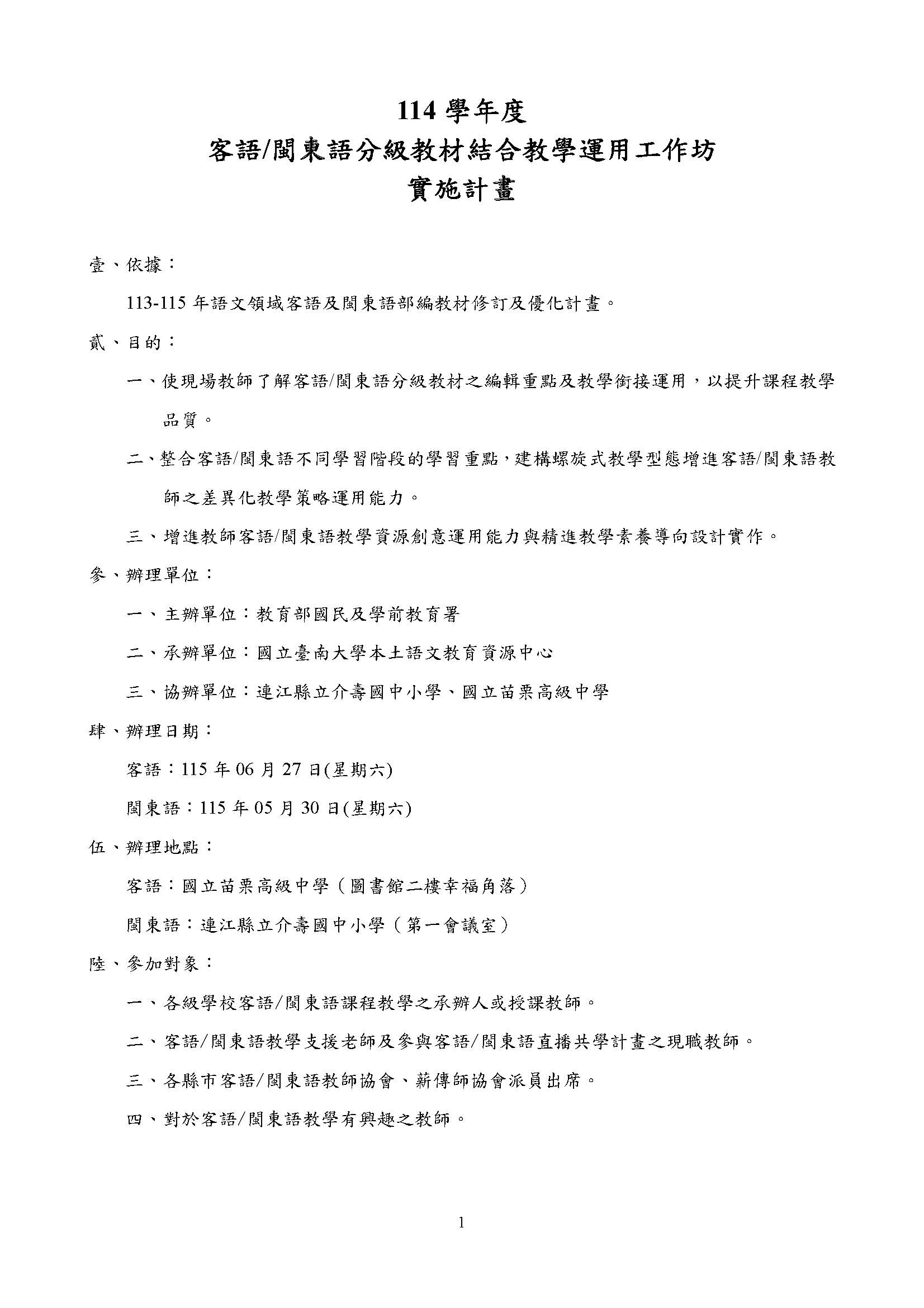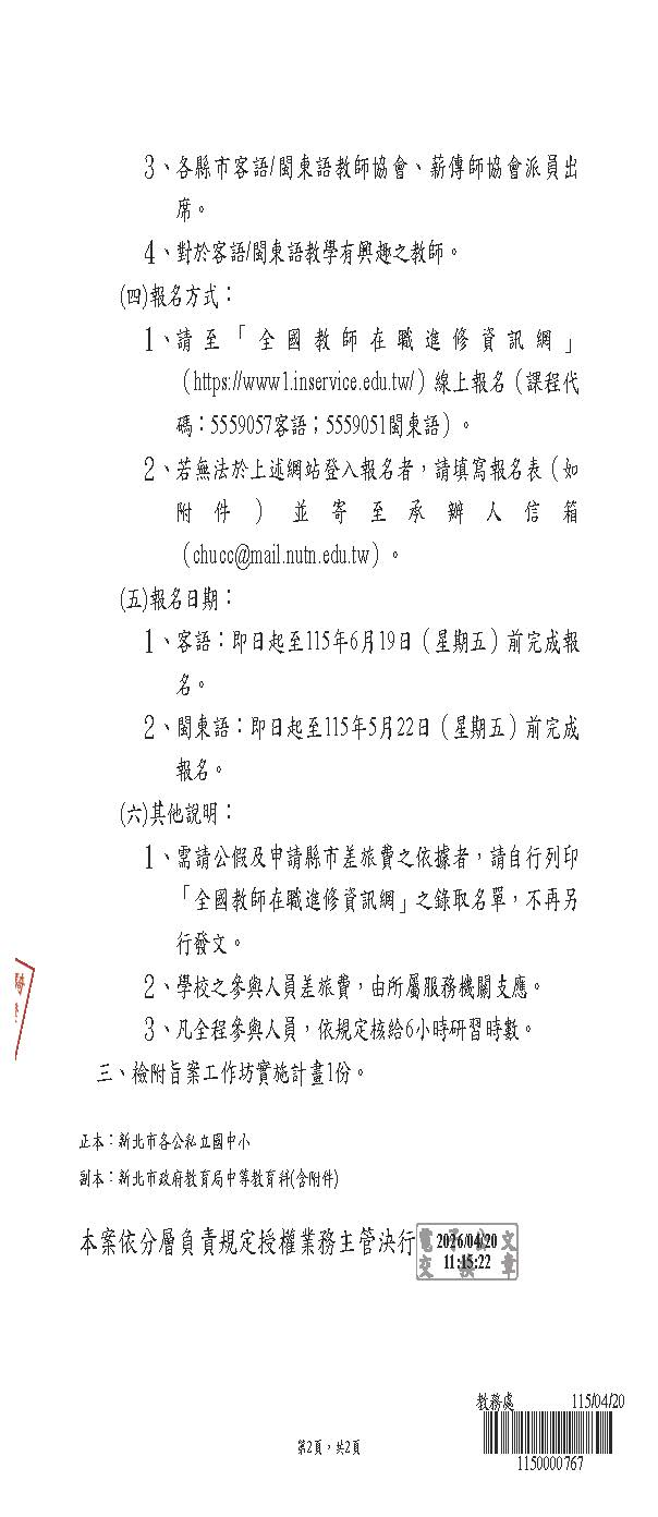 2026 4/21 114學年度客語文閩東語文分級教材結合教學運用工作坊 SPEED Super Desk_頁面_1.jpg 257.79 KBSPEED Super Desk_頁面_2.jpg 87.78 KB1094572_0726077_工作坊實施計畫_頁面_1.jpg 208.23 KB1094572_0726077_工作坊實施計畫_頁面_2.jpg 294.09 KB1094572_0726077_工作坊實施計畫_頁面_3.jpg 141.98 KB1094572_0726077_工作坊實施計畫_頁面_4.jpg 152.45 KB 返回